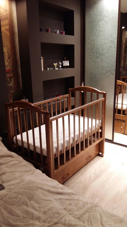 Кроватку купили с матрасом у знакомых, стояла не пользованная лет 5)))