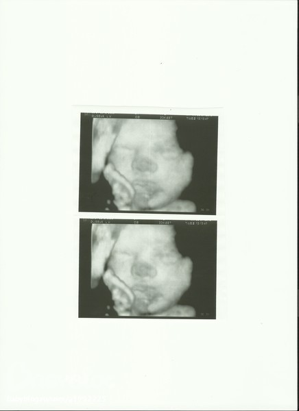 А вот наша мордашка... Носик темнее, так как в стенку матки уперся им... не хотел показываться, но 3d всесильно!!!