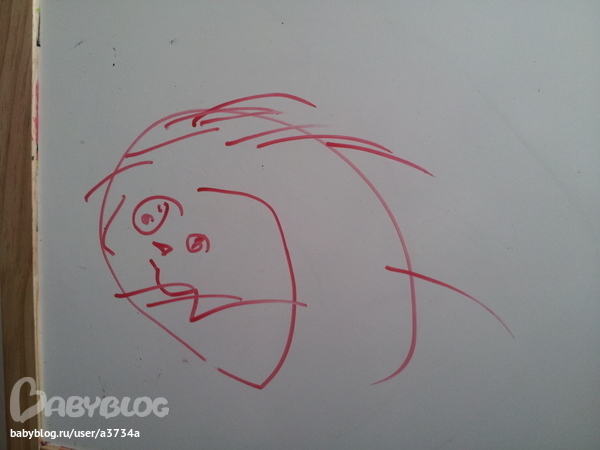 Я ему говорю "Нарисуй мне солнышко". Он круг нарисовал и пошел, я попросила добавить глазки, ротик и носик... ну а в конце он сам пририсовал лучики!