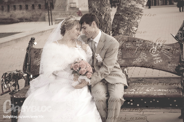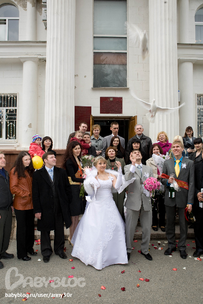Вот только отмечать мы наверное сегодня никак не будем, все-таки будний день, да и муж дома наверное поздно будет... Да и с малышами нашими не очень-то отпразнуешь, у них свой режим, какие с ними праздники. Так что перенесем на выходные, наверное. Вот фотки свадебные, похвастаюсь я )))