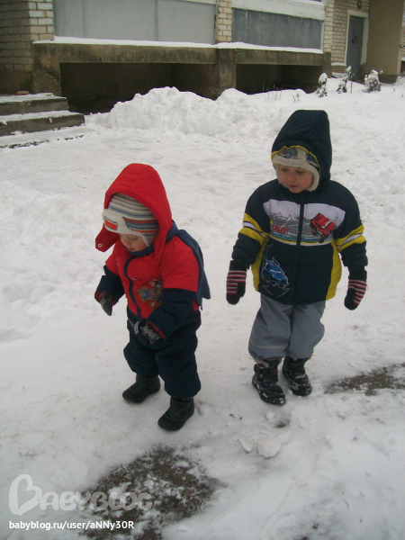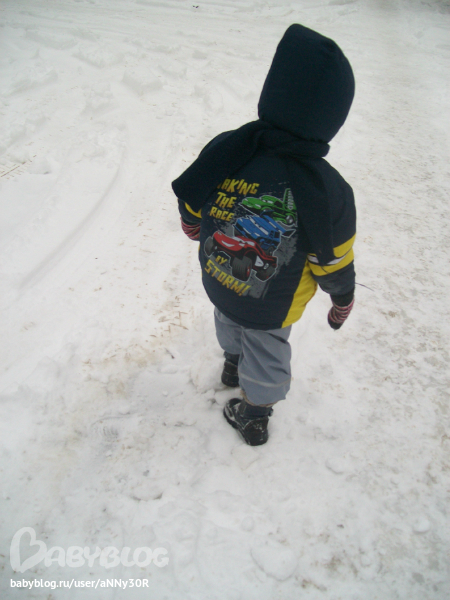 А Ярославу ничего, только вот дурачок - в снег залез руками, и ручки быстро замерзли... В общем, вся прогулка была минут 40...
