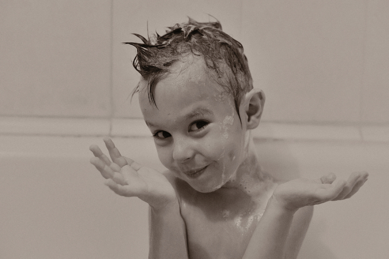 Кстати о воде... Голову наконец-то научился мыть нормально. НАКОНЕЦ_ТО!!! Очень горд. Очень))) "Я вот так ручками закрою глаза, а ты мне мой голову! А то она вонючая... А потом феном будем сушить" Не знаю, что ему больше нравится, мыть голову или сушить ее потом феном. Или он моет голову только чтоб потом посушить феном)))