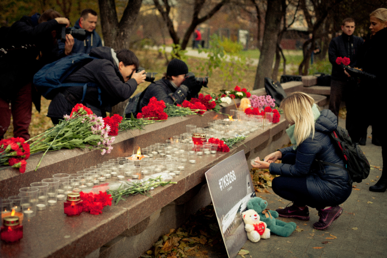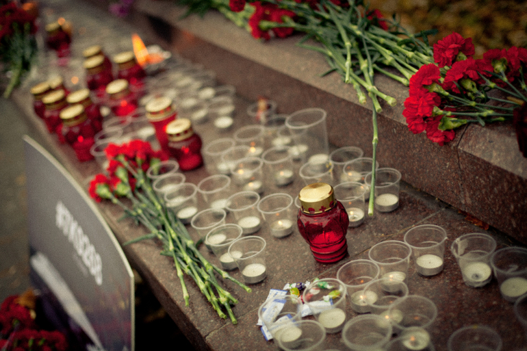 ГрустьСегодня на Площадь Яузских Ворот пришли сотрудники Авиакомпани Трансаэро,чтобы почтить память погибших в авиакатастрофе над Египтом пассажиров и членов экипажа рейса 7К9268.