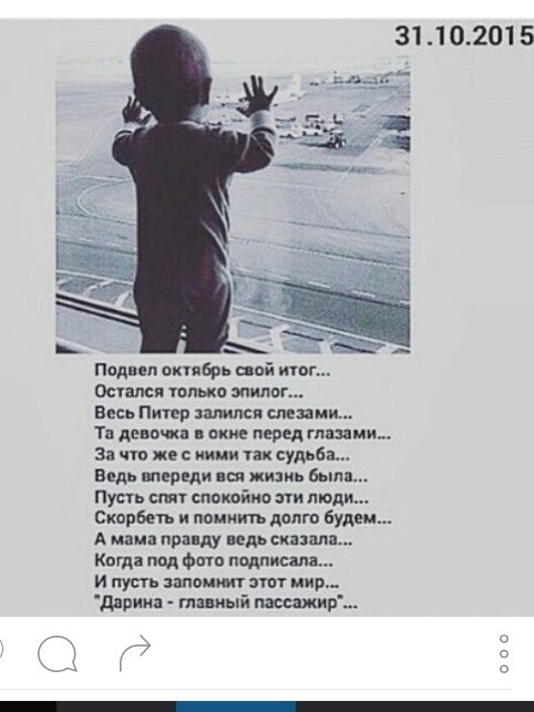 А я все спрашиваю мужа: "А вот если он развалился, они ведь сразу умерли? Им не было страшно?" - "Да, сразу..." Просто больнее думать о том, что они все видели, чувствовали, плакали, сжимали детей, мужей, жен... Пока летели вниз.