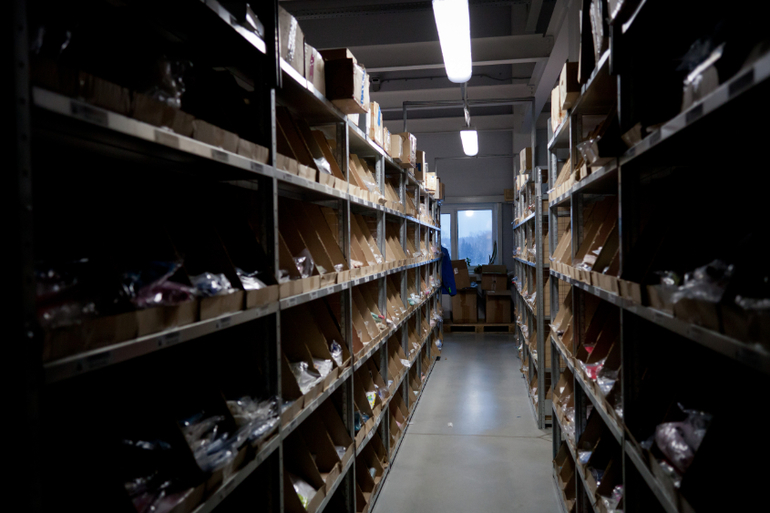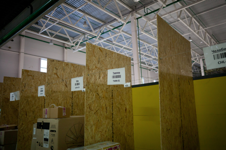 Таким образом один заказ, состоящий из нескольких позиций будет собираться полуавтоматически с разных частей склада. И занимает этот процесс гораздо меньше времени, как если бы это делал человек вручную. Да и вероятность ошибки ниже. Поэтому магазин Esky способен обрабатывать 7 000 заказов в день, а доставлять их уже на следующий после заказа день. И не только по Москве. Так например в Нижнем Новгороде появился пункт вывоза заказов, где так же быстро как в Москве клиент сможет получить свой заказ. Количество таких городов растет.