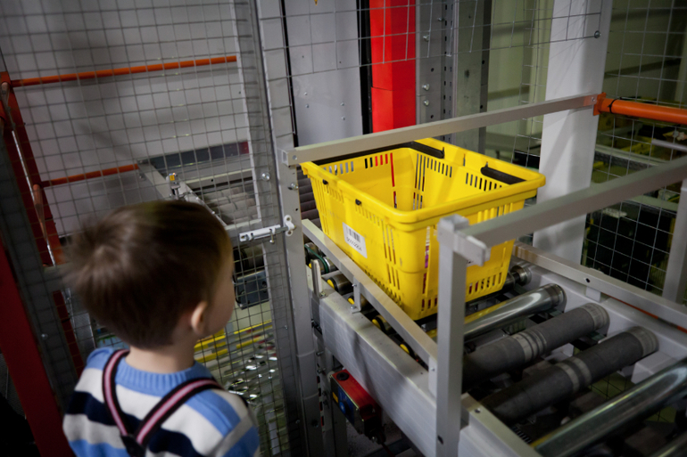 А еще есть лифт) Для корзинок, конечно. Чтобы они могли перемещаться с этажа на этаж. Люди пешочком-пешочком)))