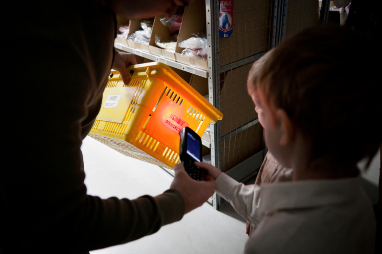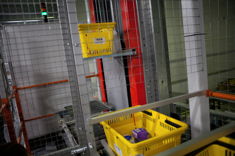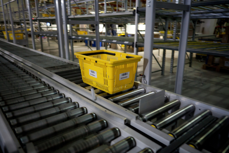 И она, корзинка в смысле, не заблудится. Корзинки оснащены радиометками, которые содержат в себе информацию о комплектуемом заказе.