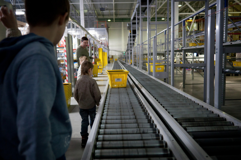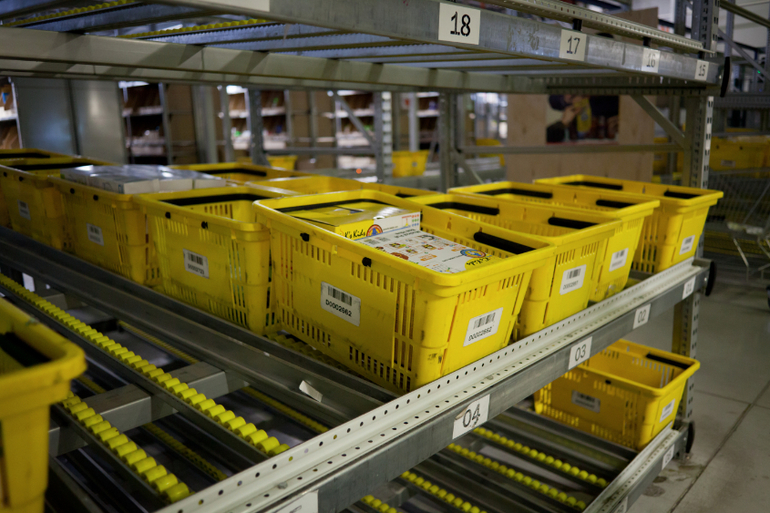 В другой части склада, например, в отделе детского питания, сотрудник сделает то же самое, отправив заказанные пюрешки по конвееру на комплектацию и упаковку.