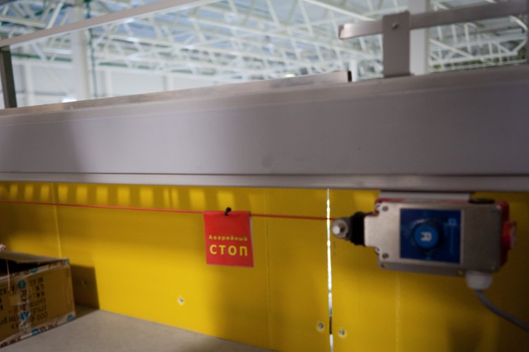 Наше путешествие на складе началось с верхней его части, где расположился отдел одежды. Сотрудник данного отдела склада, получив задание, начинает комплектовать заказ. Для этого используются сканеры штрих-кода, считывающие и сверяющие данные о товаре. Собрав необходимые товары в отделе, корзинка отправляется в место комплектации заказов по конвееру. То есть корзинка едет сама, свершая достаточно длинный путь из одной части склада в другую. Сама. Вместо сотрудника.