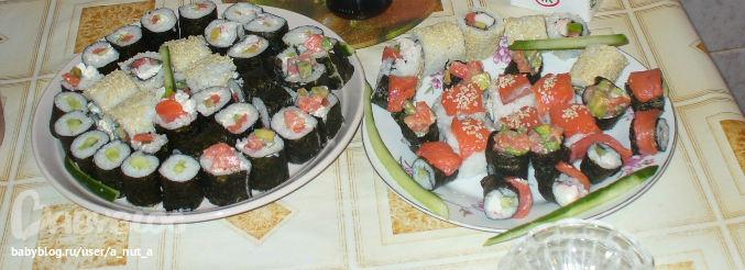 Так захотелось роллов, сил нет. Решила вместо похода в ресторан сделать дома. Поискала в инете как рис варить, до этого делала пару раз рис не получался, когда в соус клали все разваливалось, а в этот раз все получилось...ммм....наелись от души ))) Вот парочка фоток