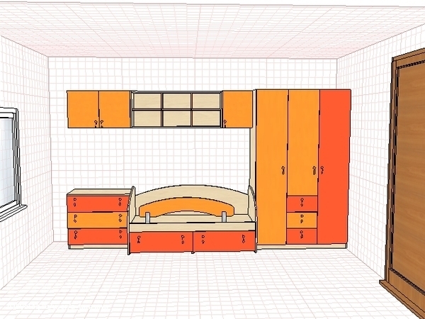 Вот! В полках будут жить зайки:) над кроваткой ночничек солнышком или полумесяцем- еще выбираю. На противоположной стене: столик и стулья для детского творчества, крупные игрушки, горка, Темин автопарк. И на самой стене дерево с полочками, фотку попозже покажу;)