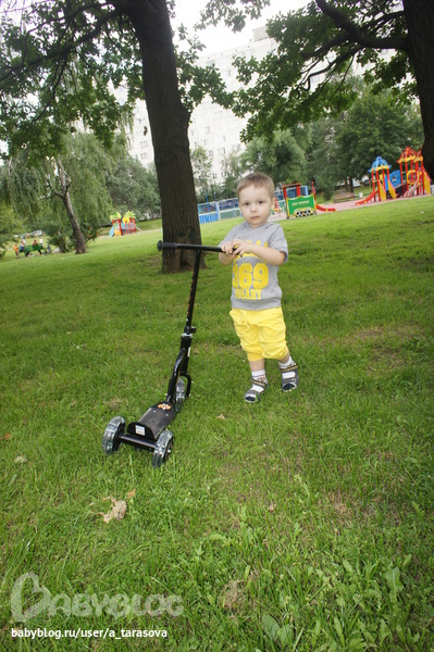 а это мы на самокате..."типа катаемся". На самом деле я этот самокат вечно на себе таскаю..