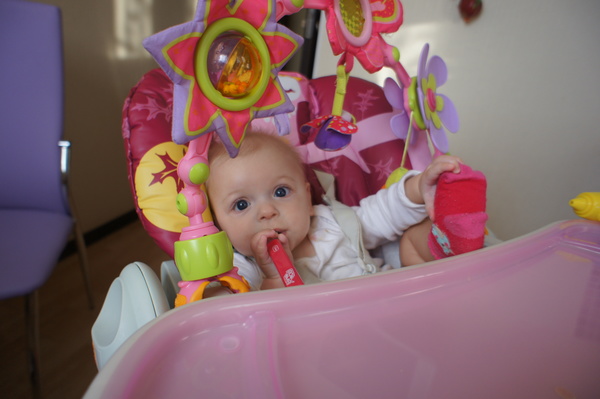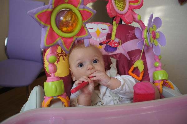 этот комок крикливый второй день уже меня мучает.Теперь новая фишка - отнимает у меня ложку и жует ее,боюсь что совсем съест:)По этому кормежка банкой пюрешки занимает теперь ооочень долгое время...каждую ложку нам надо обгрызть и обсосать.прежде чем приступать к следующей....