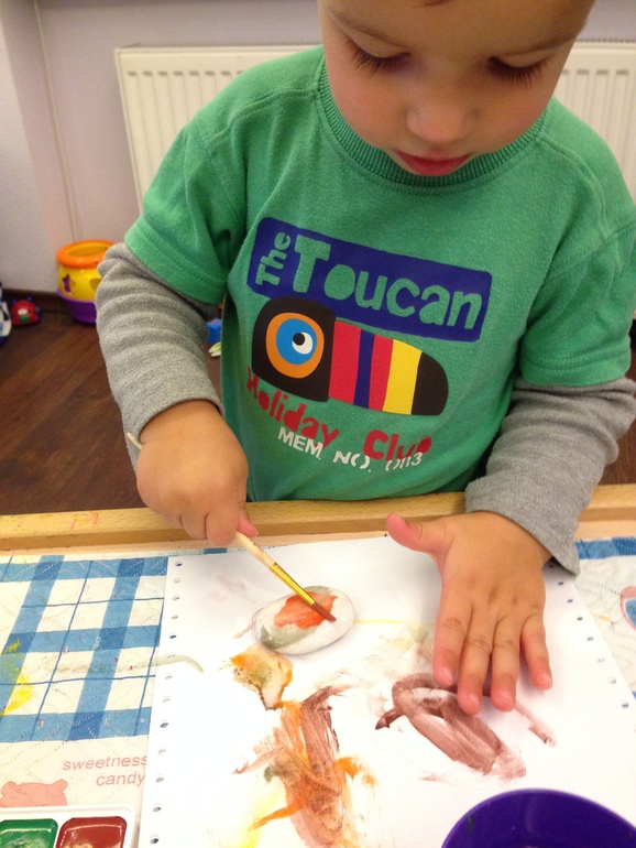 Не за что :)Да, увлекся работой. Дима вообще красками любит рисовать. Сначала пальчиковыми рисовали, а потом он цвета в них смешал и мы их выбросили. А это достала акварельные на пробу и Диме понравилось возится. Только нужно подсказывать, что кисточку надо мыть перед новым цветом.