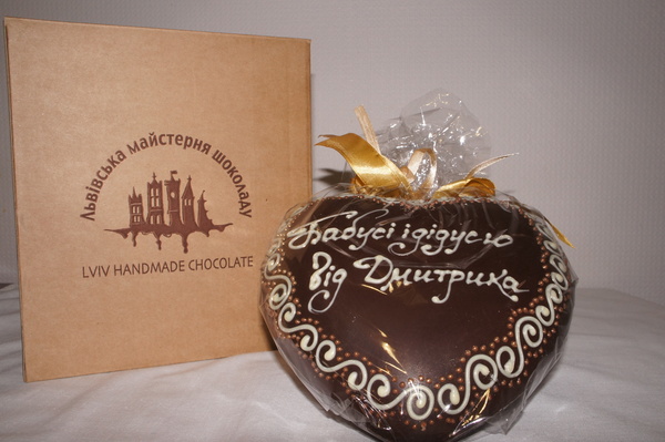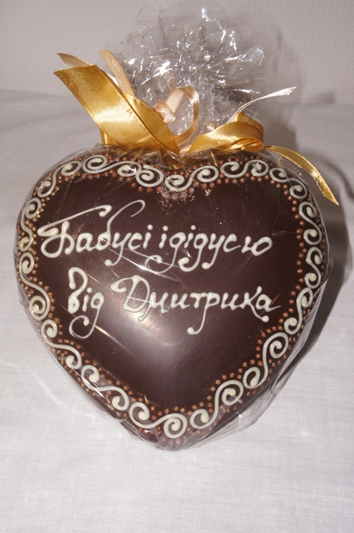 Вот такие шоколадные сердца с надписью "Бабушке и дедушке от Димочки" мы подготовили нашим бабушкам и дедушкам в подарок на Новый год: