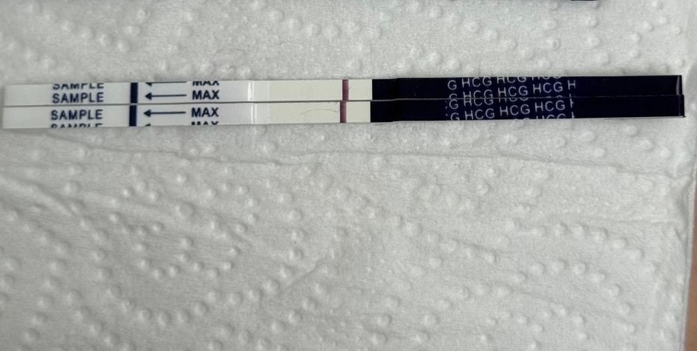 Тесты делала в одно время, с одной порции мочи, первый эвик, второй фемометр, эвик вроде пустой,но вроде и тент какая-то есть…фемометр думаю реагент( в жизни видно полоску лучше) , электронный позавчера показал 1-2недели,а сегодня утром отрицательный