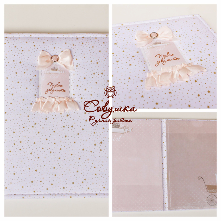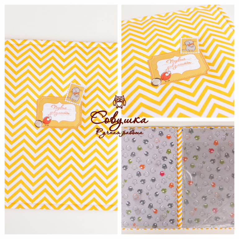Совушка подарки ручной работыПапка для свидетельства о рождении и других документов малыша изготовлена из хлопка, форзац из скрап бумаги, содержит кармашек для не больших бумаг и СНИЛС, 2 файла для свидетельства о рождении и медицинской страховки. Обложка закрывается на магниты. Цена 1200р. Доставка бесплатная по г. Химки, по Москве 300р. Заказать можно через личные сообщения или в интернет-магазине