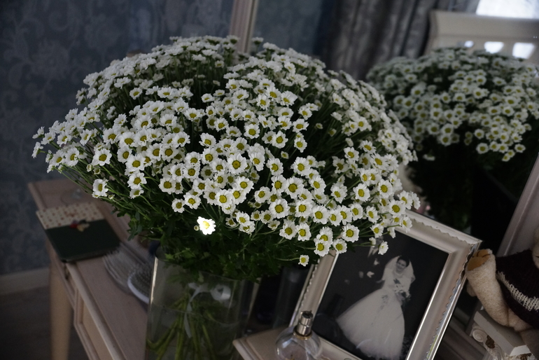 в 24-00 курьер привез маме цветы (фото утреннее) и нам шампанское ( таков обычай -первый бокал за дочек поднимаем в 24-00 поскольку оба раза было ЭКС и каждый раз договариваясь о встрече завтра виделись уже будучи родителями)