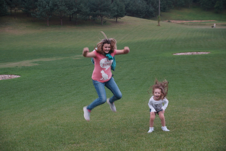 Алинка везде устраивала себе селфи и ходила позади нас) а Лиз позволили кататься лишь на малых батутах , потому что тот громадный привел Алину после спуска в шок с диким смехом ( видать истерила чуть от испуга))