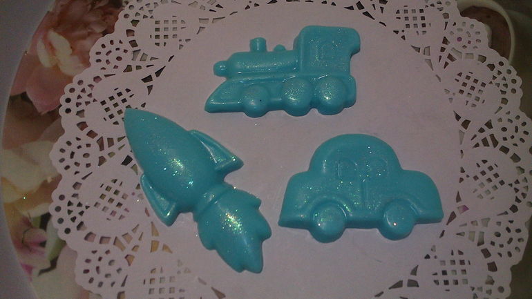 Максик загорелся сделать мыло сам, требовал машинку и ракету, но хватило еще и на паровозик