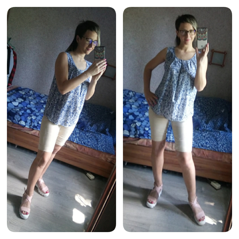 Вот блузка из Золлы на размер больше и шорты, переделанные из беременных штанов, которые шила в прошлую Б.