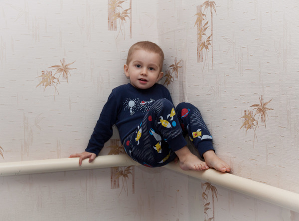 Любит залазить куда-нибудь, например, на трубу: