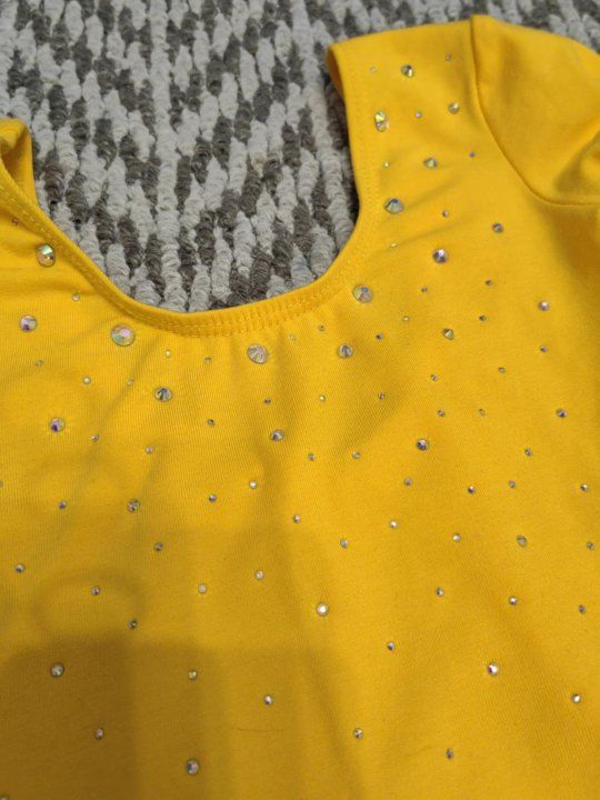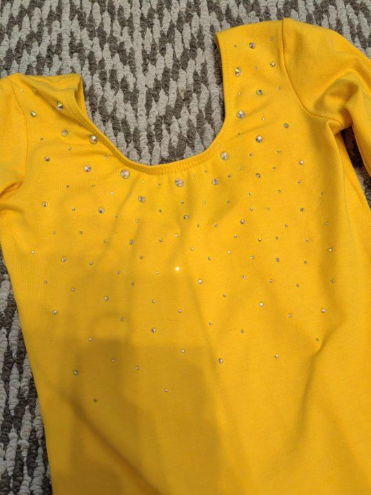 Купальник гимнастический на рост 128(хлопок). б/У. Украшен стразами РУЧНАЯ РАБОТА.