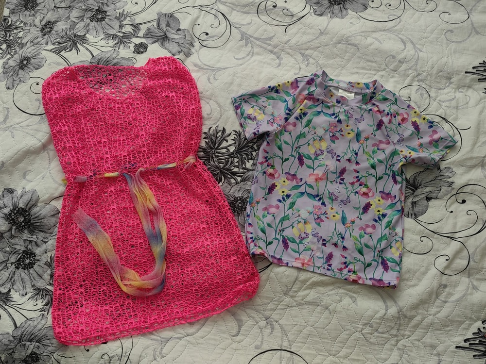 Туника пляжная 128 рост и футболка солнцезащитная для плавания 128.