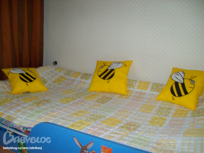 Сшила из остатков ткани.....от вот этих штор http://www.babyblog.ru/community/post/rukodelie/1856955 ...теперь они красивенько украшают кроватку сынули))))