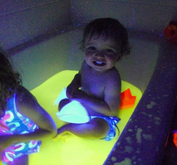 Чтобы вода в ванной светилась, как белая блузка на дискотеке в свете неоновой лампы, достаточно растворить в ванне 2 крупные таблетки витамина В (45-60 мг каждая). Чтобы свечение было ярким, выключите в ванной комнате свет и установите лампу около ванной (только будьте внимательны, чтобы лампа не упала в ванну, и не оставляйте детей без присмотра!)