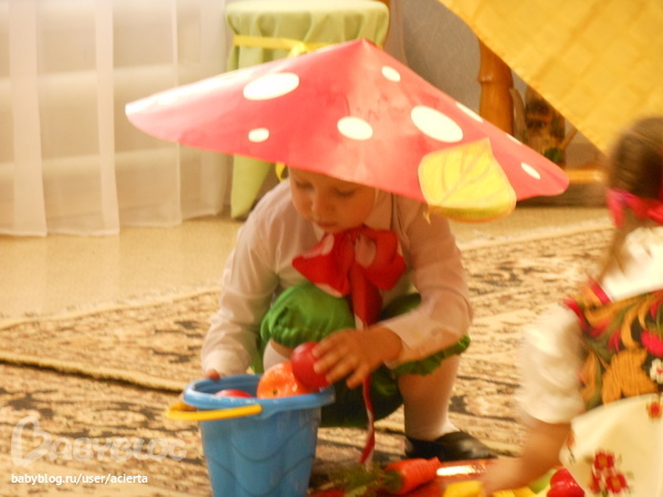 К слову о садике, мне очень нравится наша группа и наши воспитатели. Не зря выбирали! :) У детей - куча занятий, у них самая оснащённая группа по всем параметрам - от игрушек до канцтоваров, у них чудесные утренники, на которые родители готовят специальные костюмы - я, между прочим, параллельно с сыном осваиваю техники работы руками - ну там, клею, шью, рисую... например, на День осени сын был чудесным мухомором в лично мною склееной шляпе. это для вас - шляпка гриба - ерунда, а для меня - это целая ШЛЯПА!!! ГРИБА!!!