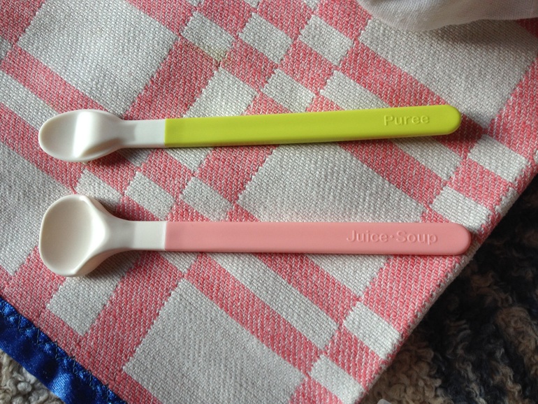 Евушка уже месяца полтора как проявляет большой интерес к взрослой пище - ей очень интересно, что же мама с папой все время тянут в рот такое интересное, а ей не предлагают :) Купила в преддверии введения прикорма вот такие ложки, даю ей иногда их погрызть, чтобы привыкала к ним. Разумеется, только под присмотром, иначе она может засунуть их глубоко и поперхнуться.