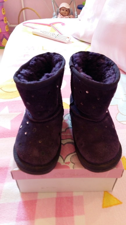 3.Угги натуральные (Австралия) фиолетового цвета. Нет всех страз. А так все нормально. Размер 24. Цена 1000р.