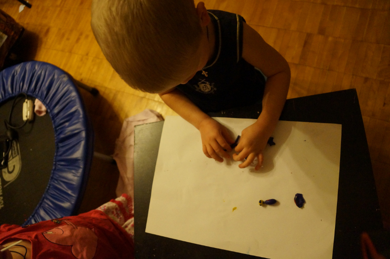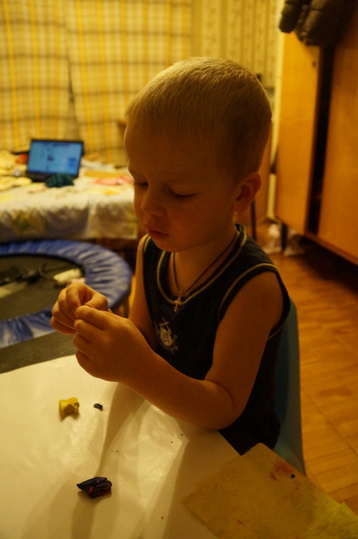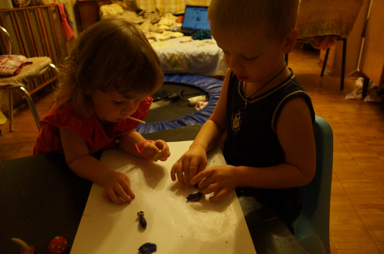 Наша Масёнка - играла рядом, но не лепила, а просто скакала вокруг)))