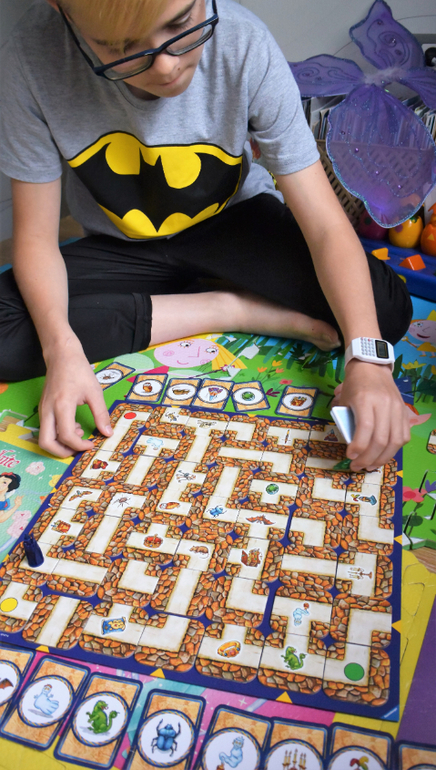 Прошлым летом мы взяли с собой на море не только карточную игру "Свинтус" (много лет с нами в поездках на море или в деревню, заразили не одну семью), но и большую коробку Лабиринта, что показатель! Игра стратегическая, азартная, местами - нервная (лично для меня, но на море я расслабляюсь:)) и далеко не всегда дающая тебе победить. За 2 года игры со старшим сыном (12+) я еще ни разу не выиграла. Вика в силу возраста (и не говорите, что и в силу пола) самостоятельно играть в Лабиринт не может. Помогаю, как могу, но часто она обижается и уходит, доигрываем вдвоем с Ромкой (когда Матвей дома, то троицей играем).