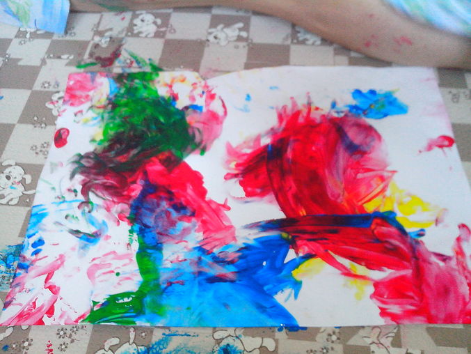 Купили мы значит пальчиковые краски...Я конечно не ожидала,что всё пройдет так..Но весело было одозначно))))особенно мне)а так же полу,комоду,стенке и Славе,который эти краски ещё и с