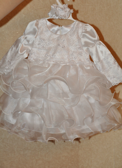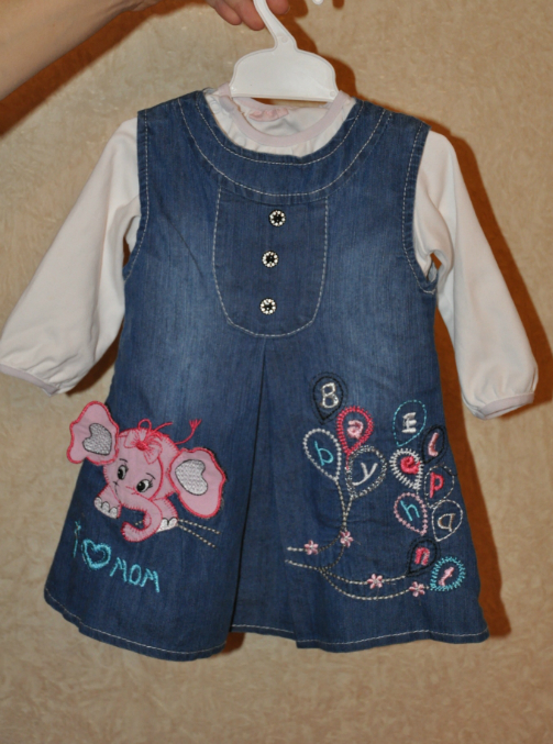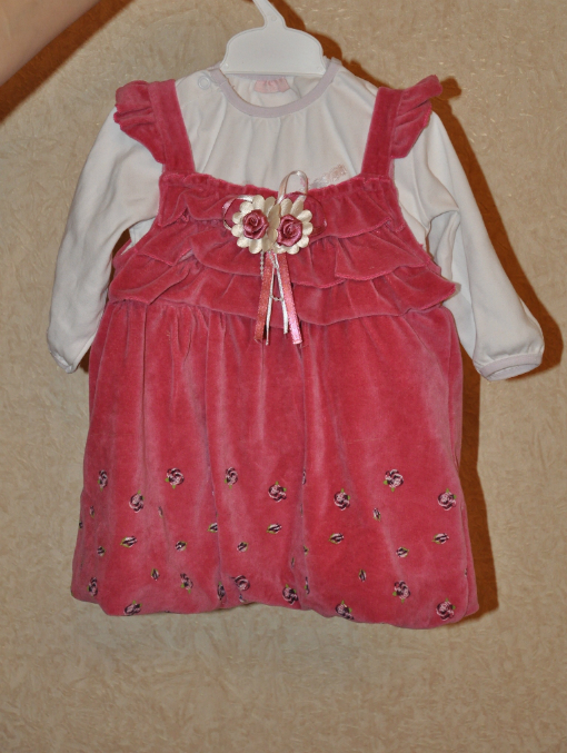 Велюровый и джинсовый на рост 74-80. В комплекте и там и там поддева белая кофточка. Каждый по 500 руб., если два то за 1000. Платье белое за 600.