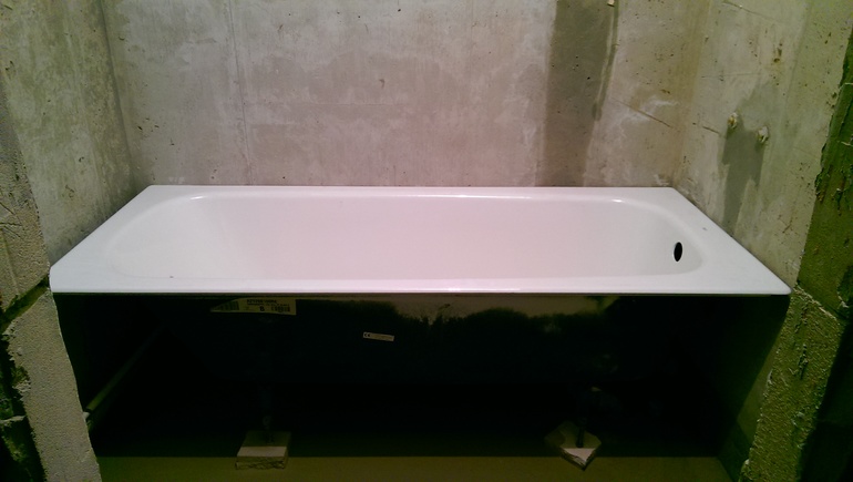 Надеюсь, скоро смогу показать фотки, пока только вот такая, тут наши новые перегородки и новая ванна. Сегодня едем за плиткой.