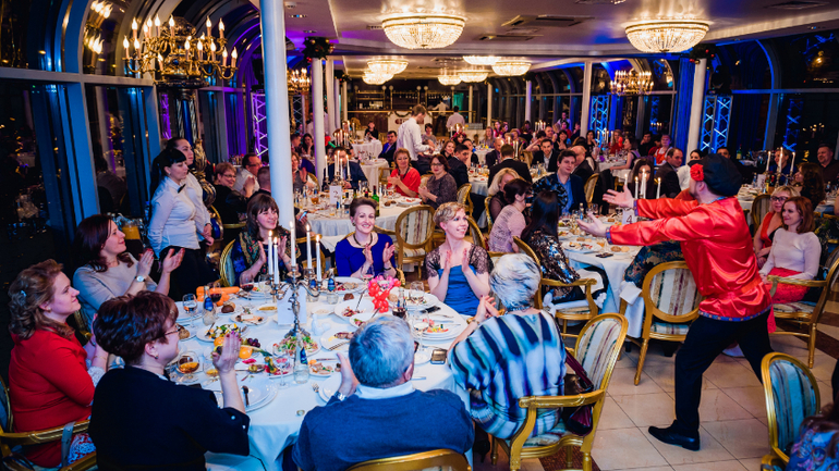 Ровно через неделю был корпоратив в Москве. Наша Компания весь год трудилась над импортозамещением, поэтому и вечеринка была в русском стиле. Костюмы для фотосессии в русском стиле, аниматоры в косоворотках, музыкальный коллектив пел зажигательные русские народные песни в коротеньких сарафанчиках. А происходило это всё на теплоходе, несколько часов мы катались по Москве-реке. Очень удачный формат развлечения, руководство отточило его, катая клиентов, а вот теперь покатали и сотрудников. Смотрите фото, я закончила.