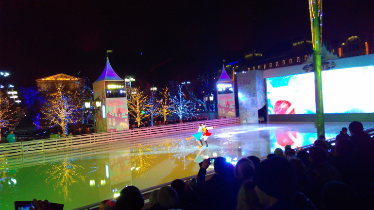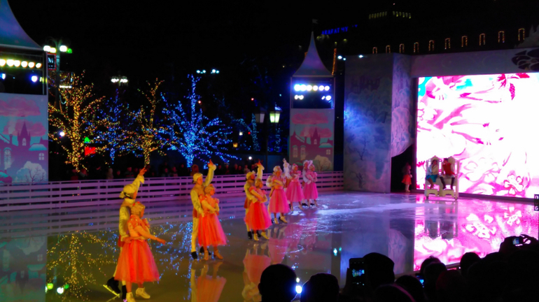 В начале уходящего года мы семейством побывали на балете на льду Щелкунчик, который шел бесплатно все новогодние каникулы, здесь писала про это. Удивительно, но Катя вспоминала это шоу целый год и узнав, что к очередным праздникам снова заливают каток для бесплатных спектаклей, мы поспешили на пл. Революции, чтобы вдоволь насладиться ледовыми пируэтами. Но....