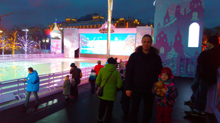 Для покатушек был выбран Парк Горького, отличное место с качественным льдом и неплохой организацией, все нам там понравилось. Начали с детского катка, но в следующий раз опробуем взрослый, т.к. через час после открытия детский становится мало похожим на детский от обилия взрослых на нем, откровенно тесновато. А взрослый и по площади побольше, да и падающих детишек тоже на нем не наблюдается. Но зато там придется обходиться без пингвинов, которые все-таки помогают начинающим фигуристам оттачивать движения на льду более уверенно.