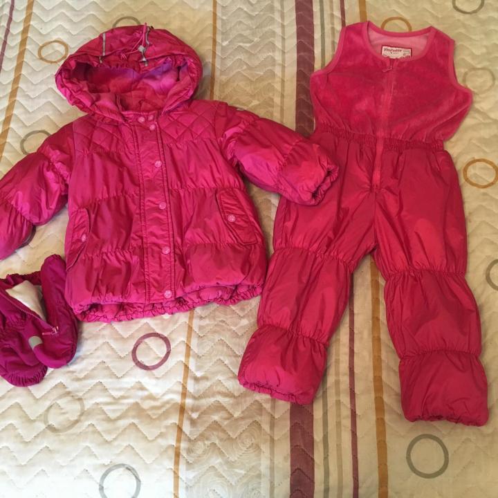 Куртка пуховая Junior Republic р.92(86-92)+полукомбинезон пуховый Ёмаё р.92(86-92)+шлем на синтепоне