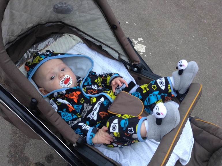 Капюшон, большой, с возможностью его еще и увеличить (молния), раскладывается до бампера в положении полусидя и сидя, лежа почти до бампера. В капюшоне встроенные колонки, можно через плеер включать ребзику музыку.