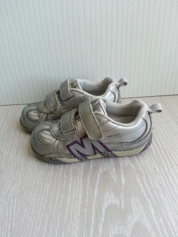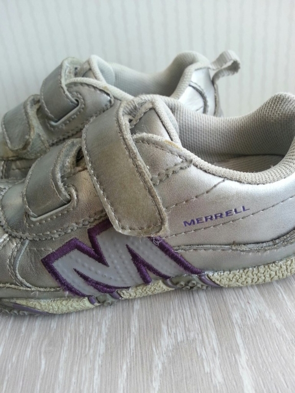 Продам кроссовки в очень хорошем состоянии. Натуральная кожа. Для девочки. Размер 26. Цвет - серебро. Фирма Merrell.