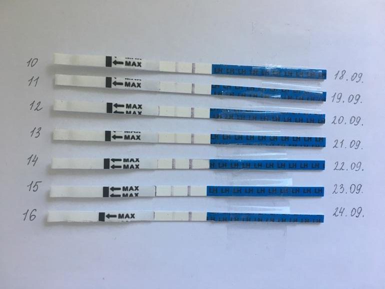 Начала делать тесты на О с 8дц, боялась пропустить О. На 9 дц тест показал две равные полоски, но электронный тест не подтвердил, а тест другой фирмы показал совсем слабую полоску, значит первый тест соврал.