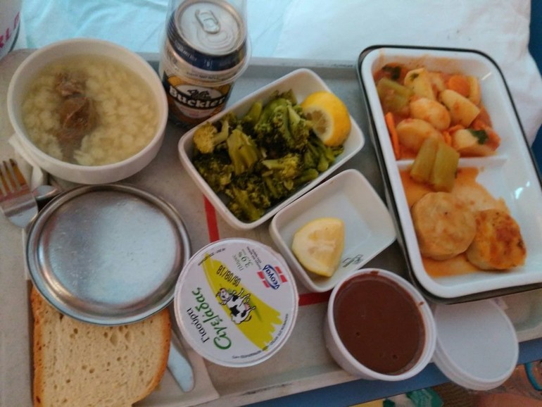 Суп с говядиной и макаронами, пиво нулевка (для лактации), крем-пудинг, йогурт натуральный, молодая картошка, тушеная с морковкой, перцем и подливой, рыба - 2 кружочка без кости, брокколи, лимон