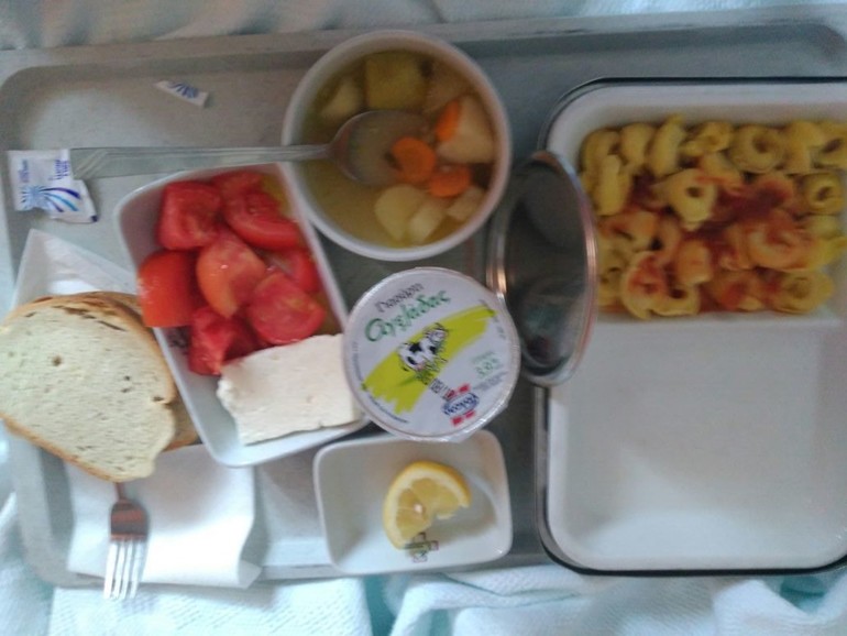 3. ужин. Помидоры, сыр фета с оливковым маслом, натуральный йогурт, канелони (типо пельменей с картошкой) с подливкой, суп из картошки, морковки, кабачка), хлеб