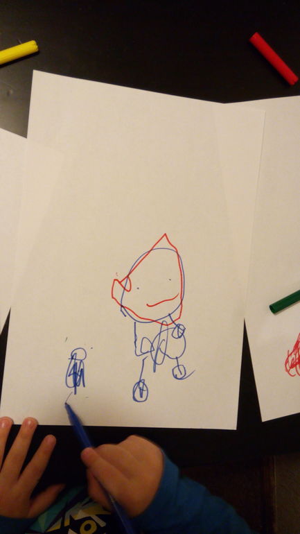 Хочется особенно отметить. Скачок в развитии. Научился складывать пазлы до 20 деталей, научился рассуждать, комментирует свои действия, конструирует самолёты, дороги, автобусы, кровати, скамейки из лего. Развивается сюжетная игра, артистизм. Говорит разными голосами. Научился кувыркаться. Человека рисует уже с прорисовкой головы, рук, ног, туловища. Пытается изображать ступни и ладони. Пропевает английский алвафит, считает до 19, на английмком до 10.
