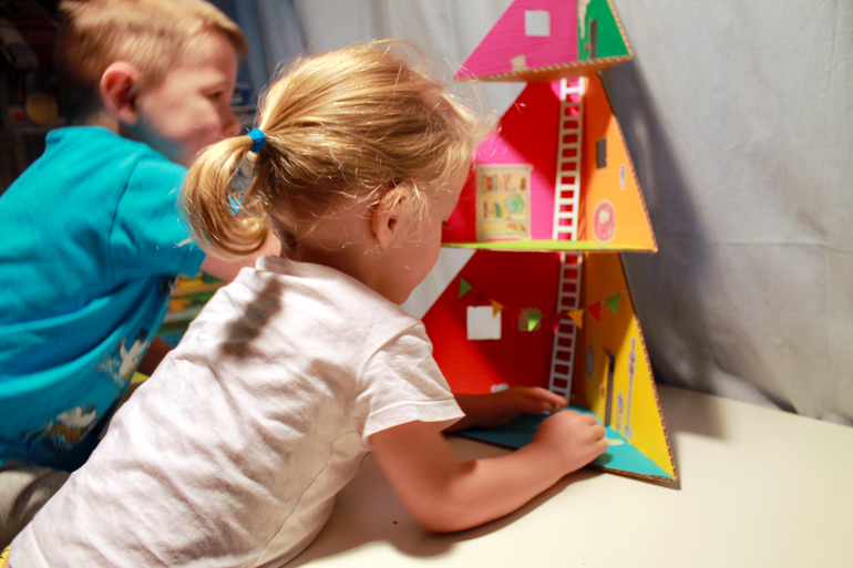 Вчера сделали картонный домик. Времени потратили 2 часа днём, а потом вечером доделывали, когда уложили детей спать. Легли почти в два счастливые