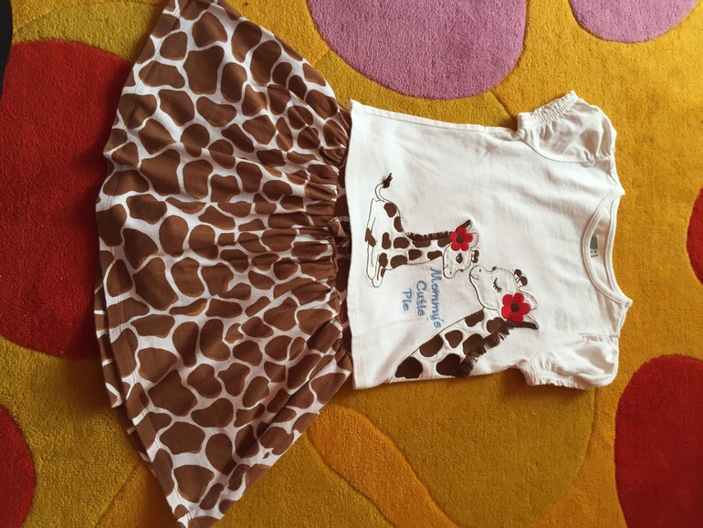 Я в Истре, платье зара размер 24-36, костюм с жирафами и юбка джимбори размкр 2т. Все на рост 92+-